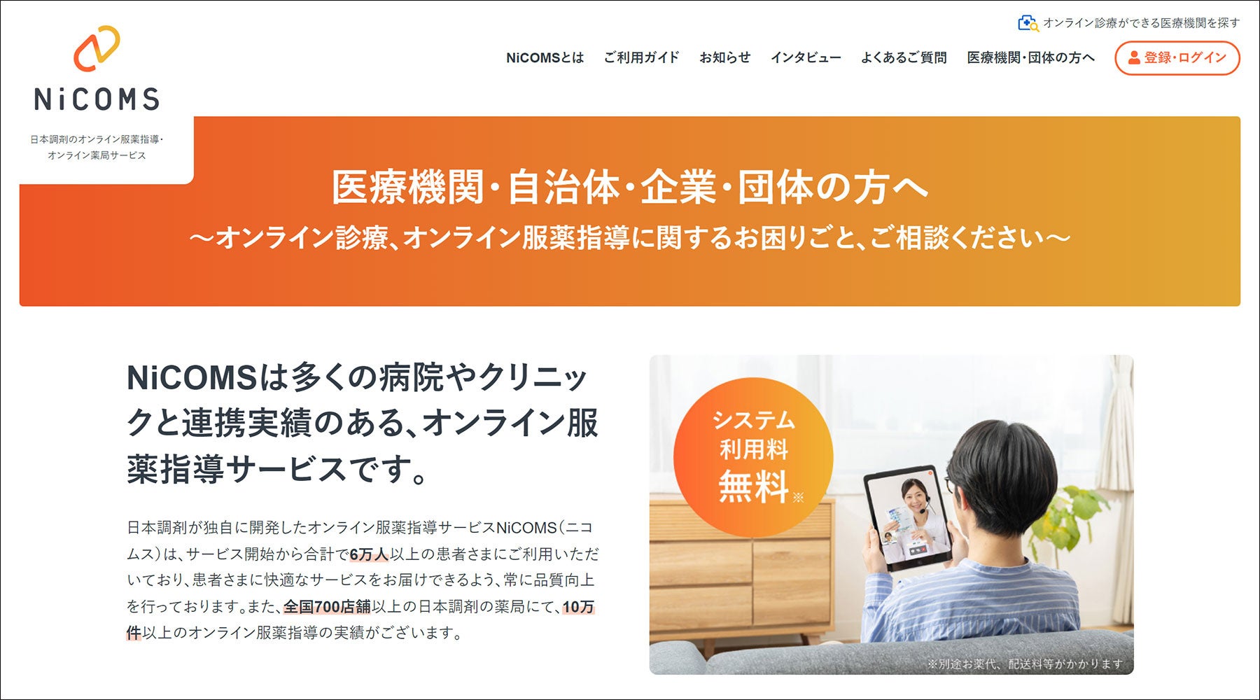 日本調剤、「NiCOMS」公式サイトに医療機関・団体向けご案内ページを新設 ~オンライン服薬指導で新型コロナウイルス感染拡大防止や企業の健康経営に寄与~