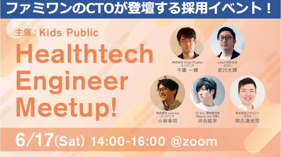 エンジニア採用に向けて、ファミワンCTOの阿久津が5社のスタートアップによる合同イベント「Healthtech Engineer Meetup!」に登壇します