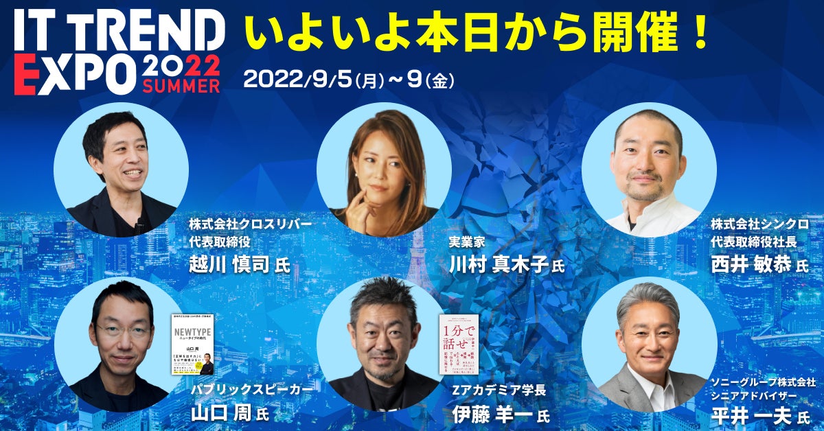 いよいよ本日から開催!業界最大級のオンライン展示会「ITトレンドEXPO2022 Summer」、5日間で130以上の豪華講演数と200以上の製品を公開