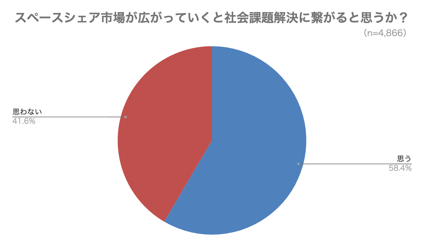 ・スペースシェアサービスまたはスペース共有型サービス群のいずれか、または両方を知っている人のうち、58.4%が社会課題解決に期待。