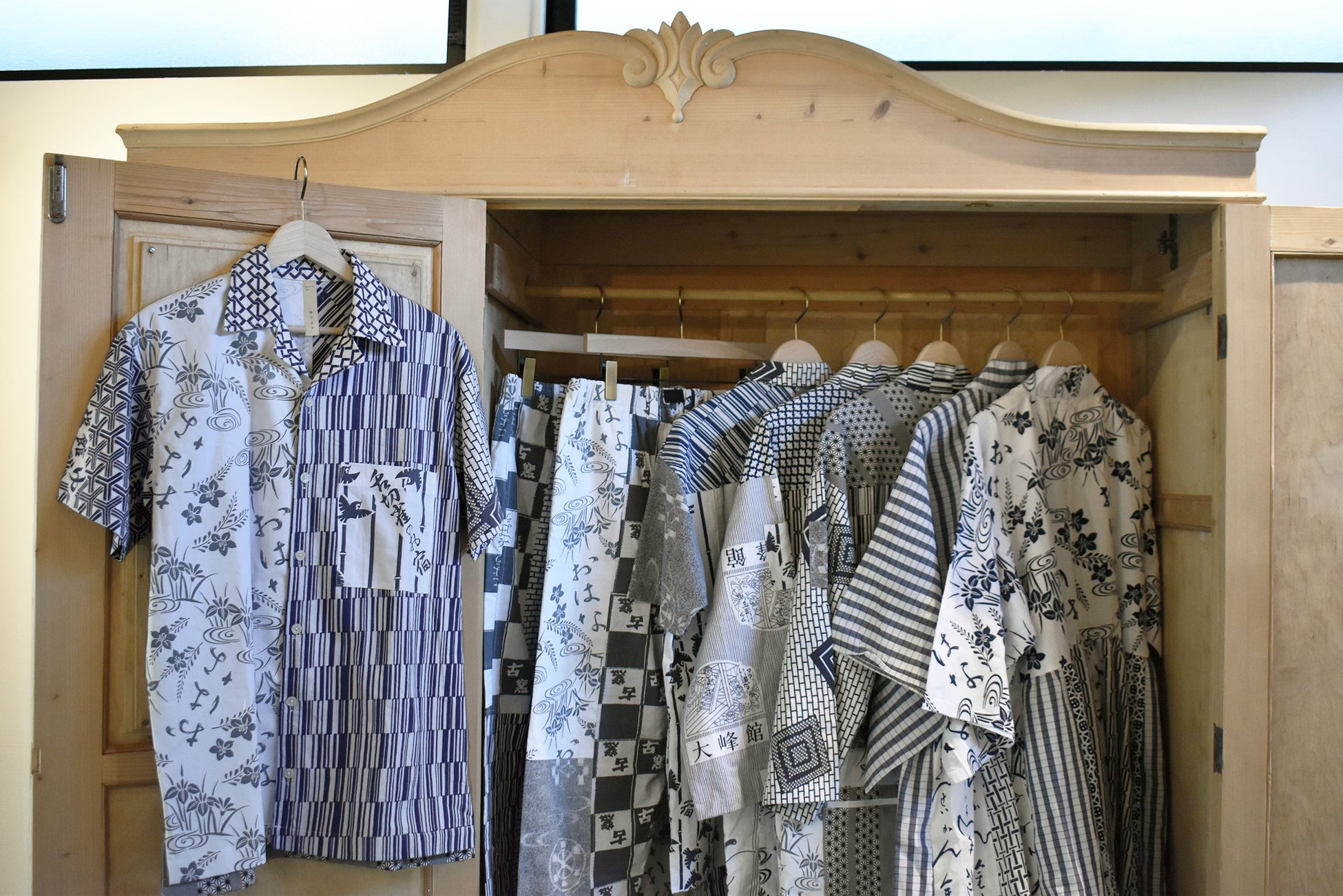 「みやじまの宿 岩惣」や、全国の旅館や温泉地で実際に着用されていたゆかたを再構築したこれらのアイテムたちは、柄や風合いがそれぞれに異なる、一点ものです。自分だけの1着を探すひとときを、ぜひ会場にてお楽しみください。