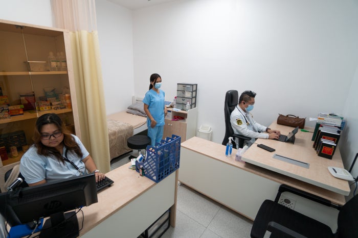 校舎出入口は1ヶ所で常に警備員が常駐し皆様の安全をお守りします。校舎入口にあるフロントデスクには日本人スタッフもいるため、日本語でのお問い合わせにも対応しております。また、校舎内には看護師が常駐しておりますので、体調不良の際はいつでもご相談いただけます。