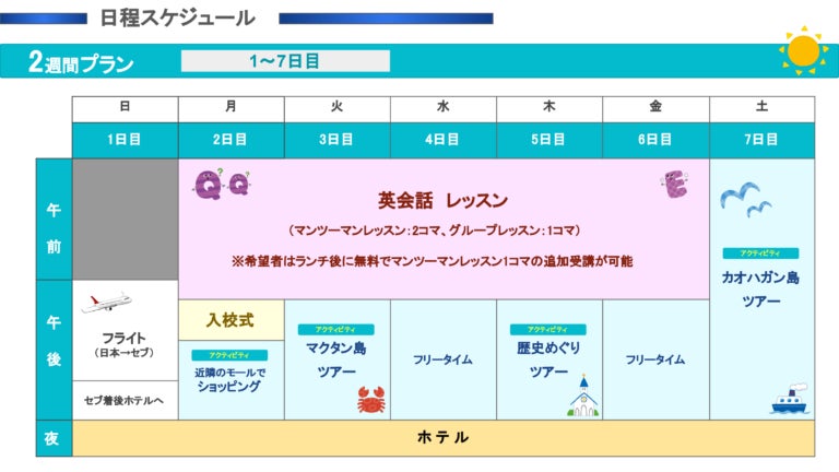 【大人のためのセブ島留学】海外が初めての方も安心!英語学習とアクティビティがセットになったお得な留学プランを販売いたします。