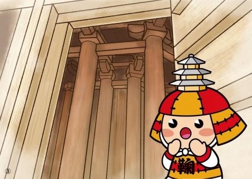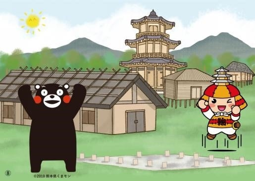 鞠智城のマスコットキャラクターである「ころう君」が紹介するストーリーとなっています。熊本県のマスコットキャラクター「くまモン」も登場する、にぎやかな紙芝居ができました。