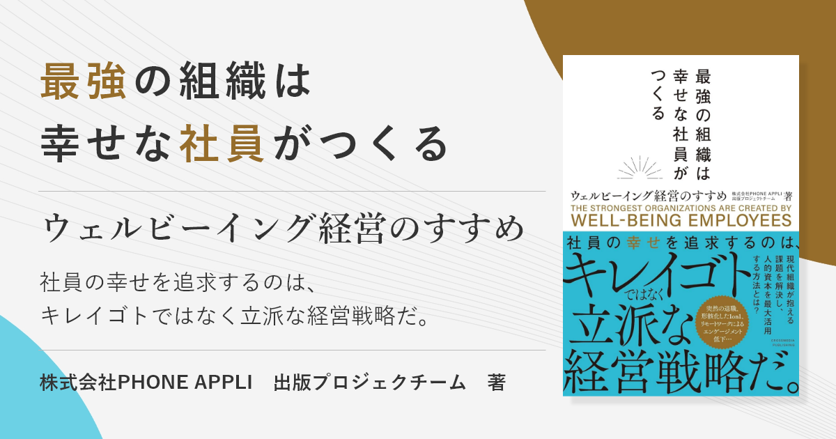 経営戦略としてウェルビーイングに取り組むPHONE APPLIのノウハウ・実例を紹介! 『最強の組織は幸せな社員がつくる~ウェルビーイング経営のすすめ~』を12月22日(金)に発売
