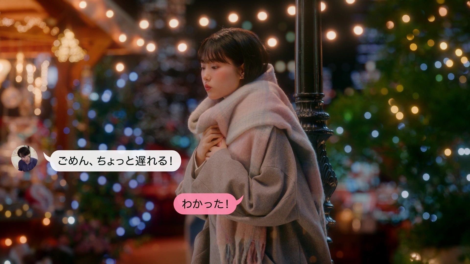 原 菜乃華さんのキャンメイクCMデビュー作となる今回は、原さんの初々しい表情からスタートします。イルミネーションきらめく街かどで、大好きな彼と待ち合わせをする原さん。ドキドキしながらその姿を探していると、彼から「ごめん、ちょっと遅れる!」とメッセージが届きます。元気に「わかった!」と返事をしますが、原さんの顔はちょっぴり曇ってしまいます。「今日は私史上いちばんかわいい私にして!」そんな願いを胸に、「パウダーチークス」をそっと頬にのせる原さん。じゅわっと果汁感のあるツヤほっぺで“私史上いちばんかわいい私”が叶ったその瞬間、彼が現れます!