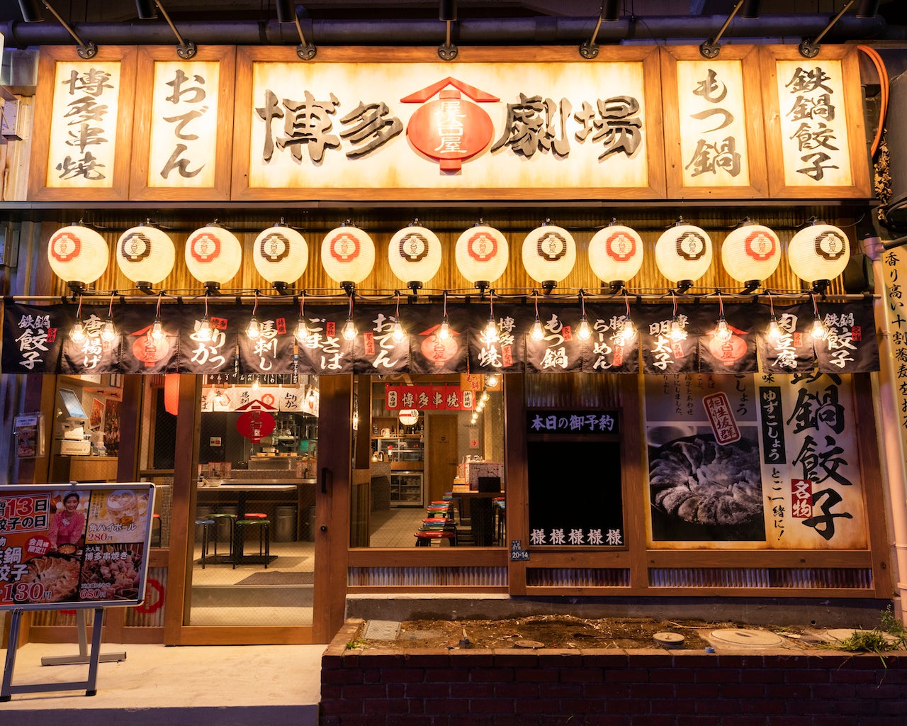 東京都、千葉県、神奈川県、埼玉県をメインに45店舗を展開。“九州博多の屋台村”をコンセプトにし、中州の屋台をリアルに再現した臨場感たっぷりの店内で、元気・活気に溢れる粋の良いスタッフが創り上げる劇場型酒場。公式アプリ会員では「歳の数だけ餃子プレゼント」や「持ち出せ企画」「毎月13日は餃子の日」などの会員様限定のお得なイベントを定期的に企画。他にも100個餃子の挑戦など、ご来店されたお客様が楽しめる、博多劇場ならではのイベントが盛りだくさん。