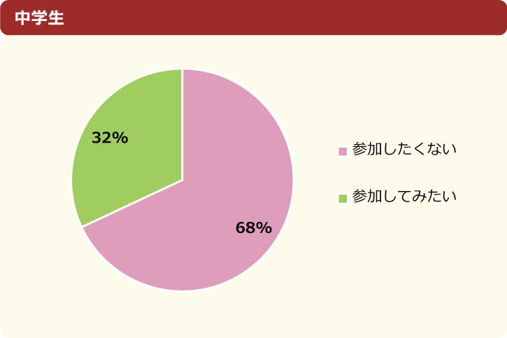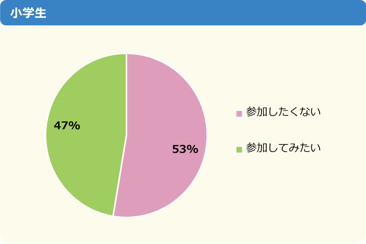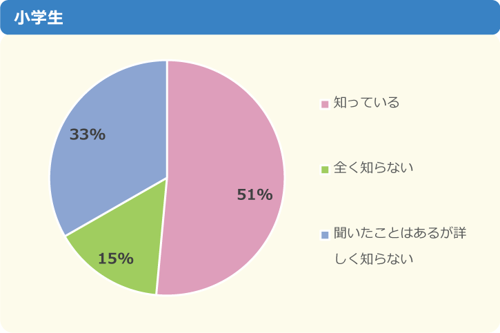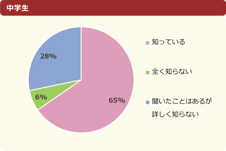 小学生よりも中学生の方が認知度はやや高いようで、「知っている」と答えた小学生は51%、中学生は65%でした。「聞いたことはあるが詳しく知らない」も含めれば、中学生の9割以上がeスポーツを知っていることになります。