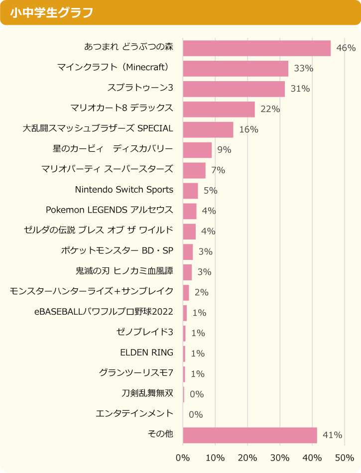 そのほか自由回答に寄せられた回答には、「ポケットモンスター」シリーズやバトルロイヤルゲーム「フォートナイト(Fortnite)」、「桃太郎電鉄」などがあがりました。
