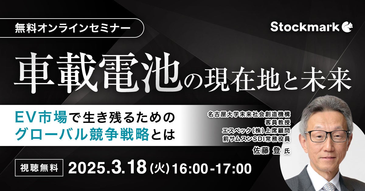 【3月18日(火) 無料セミナー】『車載電池の現在地と未来— EV市場で生き残るためのグローバル競争戦略とは』を開催(ストックマーク主催)