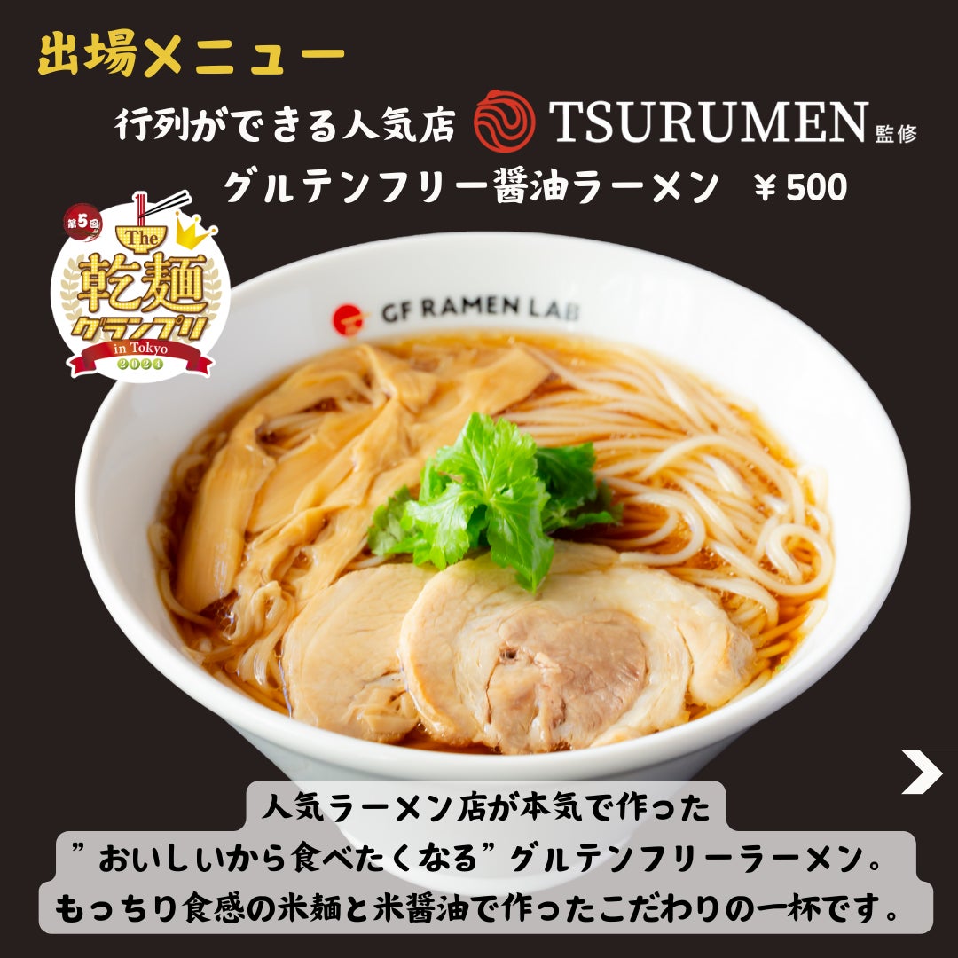 弊社は、中華麺のカテゴリーから、これまで食の選択肢が限られていた方でもラーメンの美味しさを楽しんでもらえるよう、行列ができる人気店「TSURUMEN」監修のグルテンフリー醤油ラーメンを提供します。もっちり食感の米麺と米醤油で作ったこだわりの一杯です。