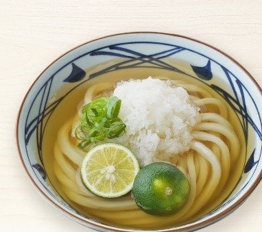 丸亀製麺ではお客さまに本場の讃岐うどんを味わっていただくために、毎年徳島県の香り高いすだちを使用しています。打ち立てのうどんや揚げたての天ぷらにひと絞りすることで、爽やかな風味が加わり、すだちの香りや酸味が、だしや小麦の風味、天ぷらの素材の味を引き立て、ひと口ごとに心地よい爽快感をお楽しみいただけます。