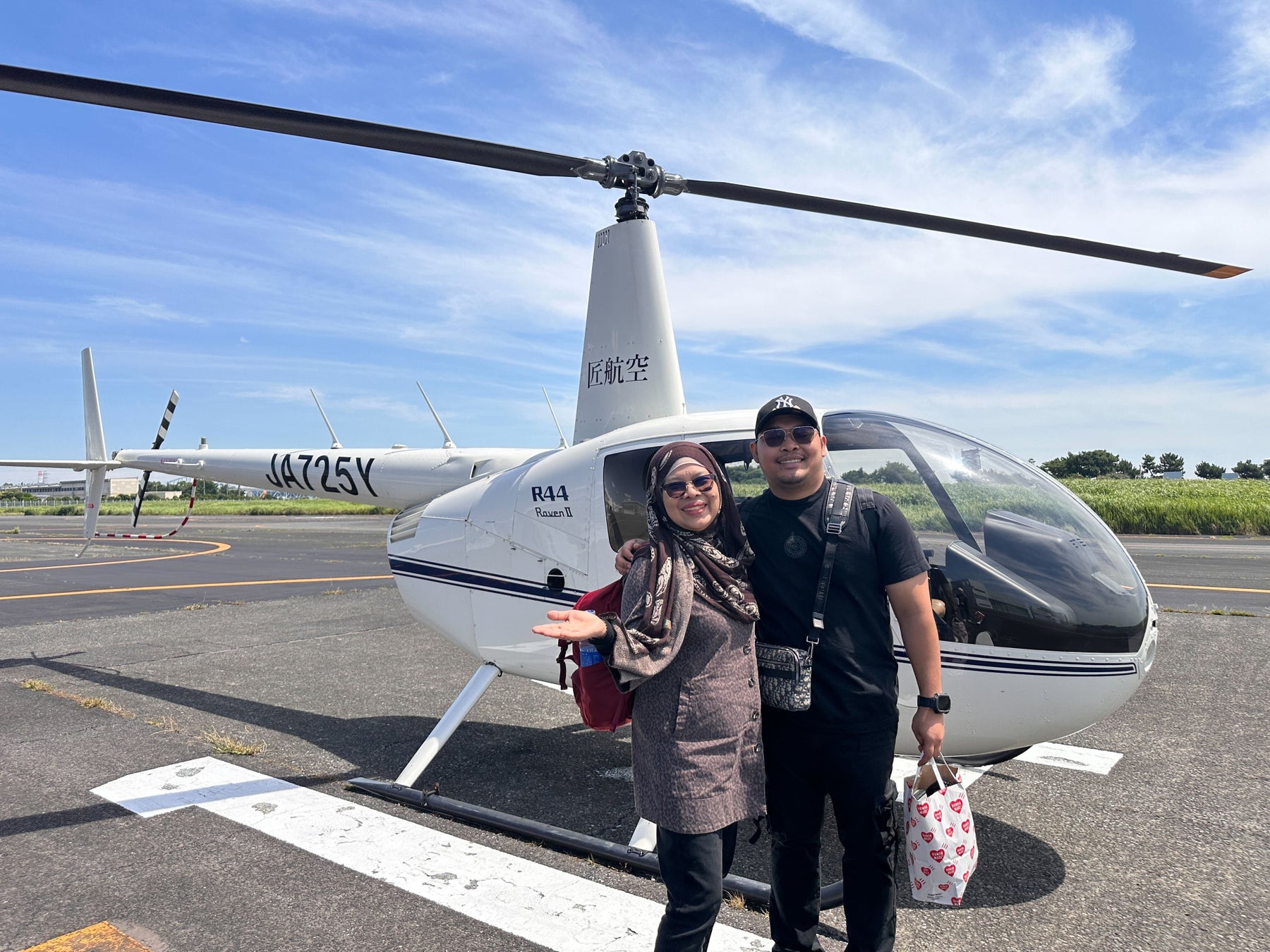 ヘリコプター往復移動、ヘリポートから酒蔵までのタクシー手配、現地酒造での英語ガイド