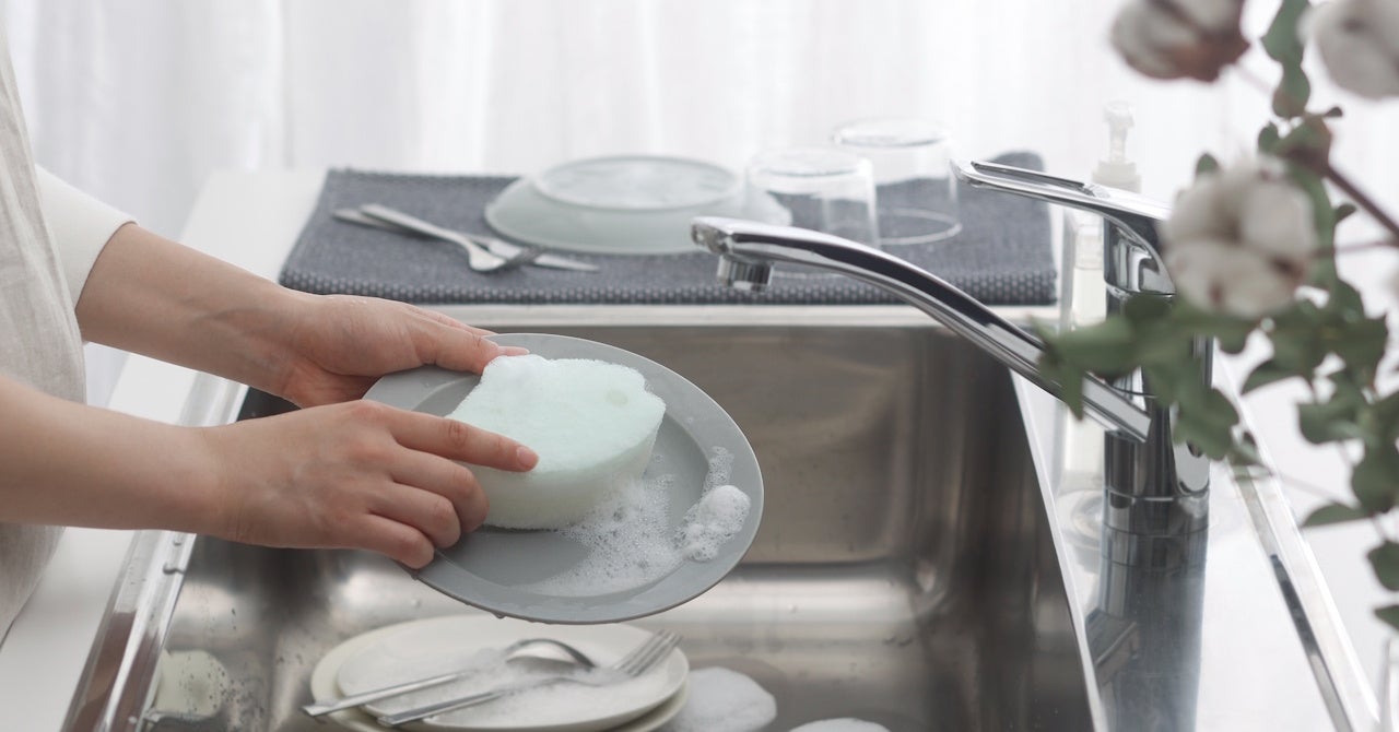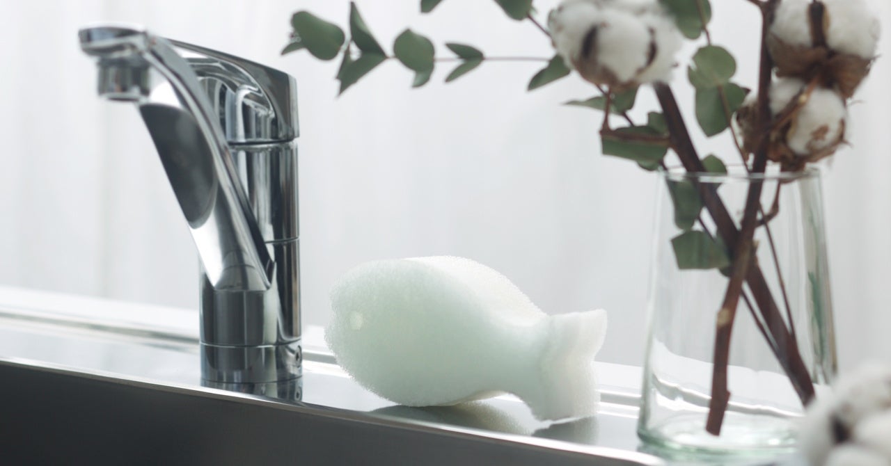 「おさかなスポンジ」はおさかなの形が手になじみ、握りやすいキッチンスポンジです。長めのサイズでコップの底まで届きます。ナイロン不織布・ウレタン・脱膜ウレタンの3層構造で、汚れ落ち、泡立ち・泡持ち、水切れにも優れています。「かわいいだけじゃなく使いやすい」と4半世紀以上お客様に支持をいただいています。
