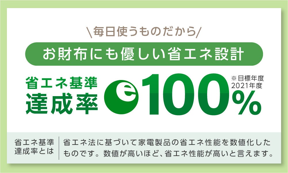 本製品は省エネ基準達成率100%の、環境にもお財布にもやさしい省エネ設計です。