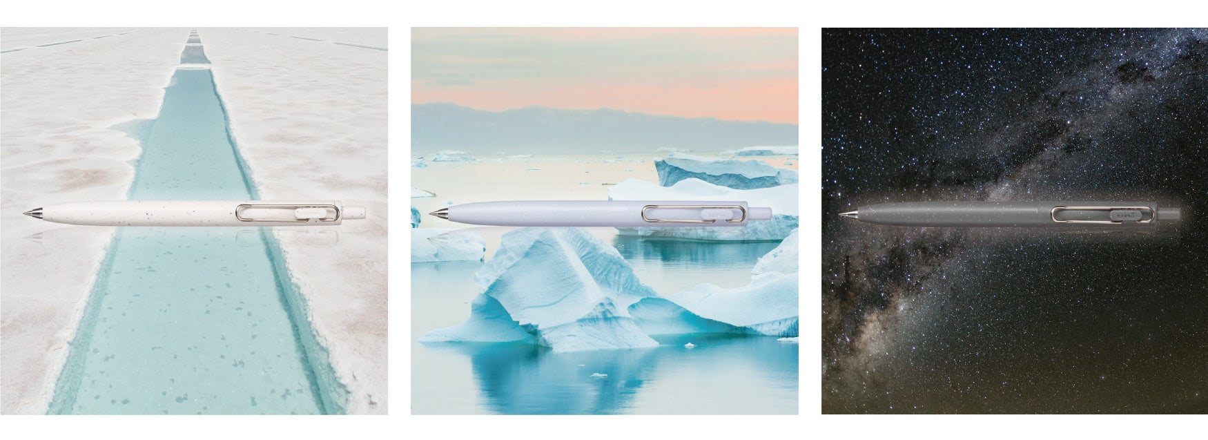 今回発売する軸色は、世界各地の自然の風景をモチーフに自然の風合いを感じさせるようなテクスチャを施した新デザインです。日々の生活になじむ落ち着いたトーンのカラーをベースに、微細な色の粒をまばらに注入することで天然石や鉱物のような風合いを表現しています。テクスチャの表現は、同じ軸色でも一つひとつ、わずかに違いが出るため、さりげなく個性的でもある特別な1本としてご使用いただけるデザインです。『ユニボール ワン F』の上質な世界観を広げる、こだわりの1本に仕上げました。
