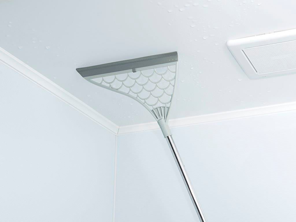 水を掃いて濡れた場所をキレイに!樹脂製の先端で水をきって跡残りしにくい「水キリホウキ」。