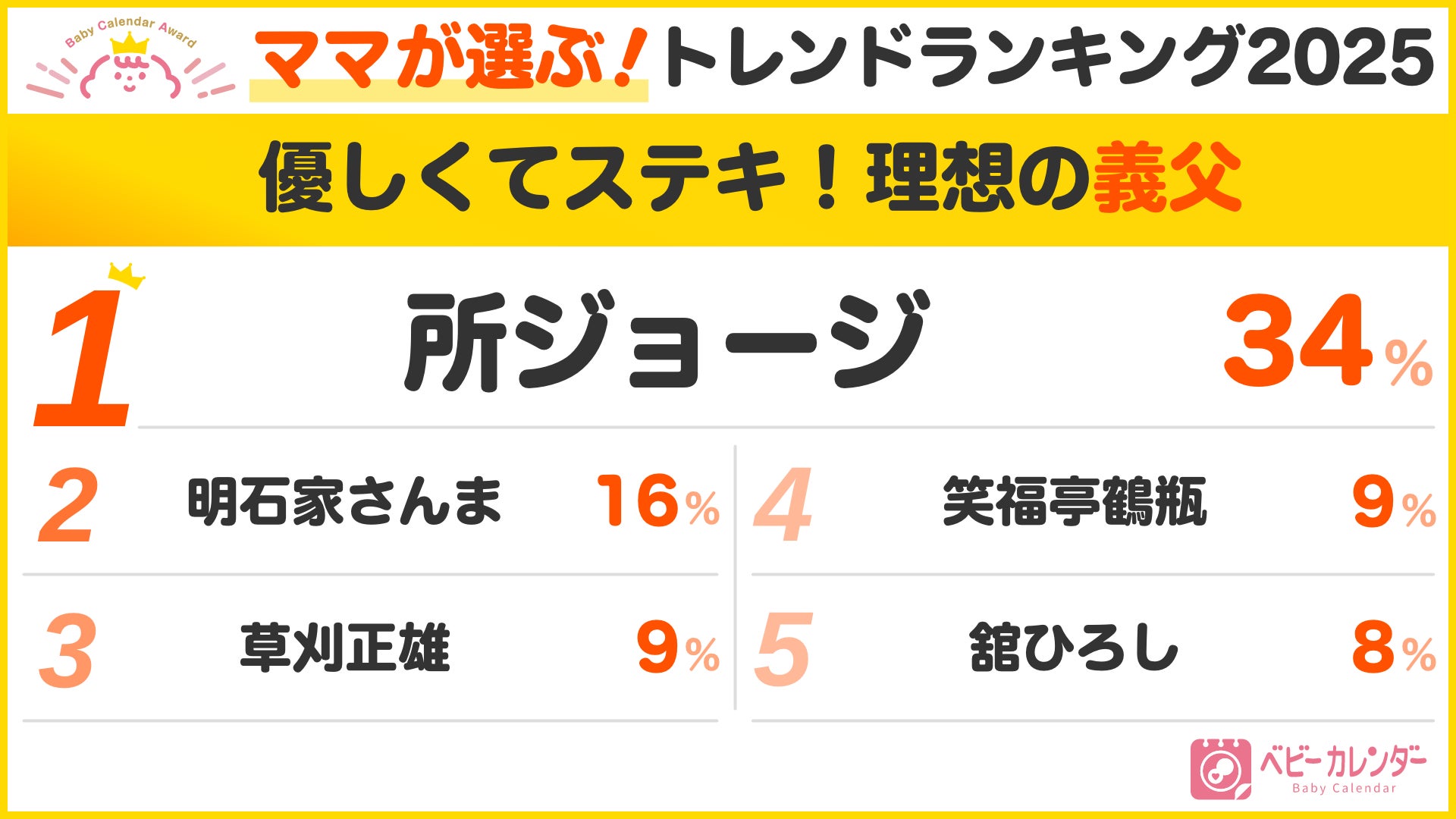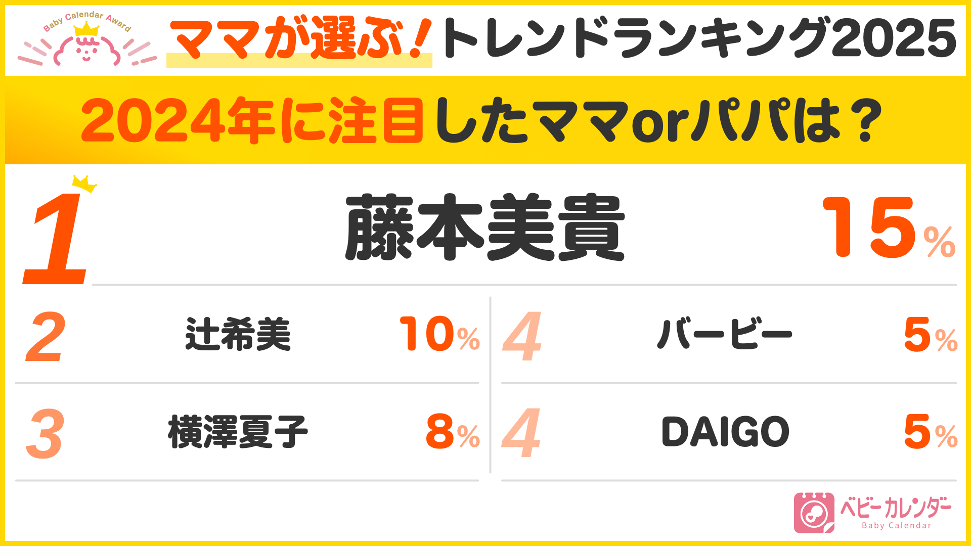【ベビーカレンダーアワード2025】マタニティ用品&子育てグッズ33部門、スペシャル部門をランキングで発表!5年連続1位に輝く育児グッズは何?理想の義母は2位の天海祐希を抑え、あの有名人が1位に!!