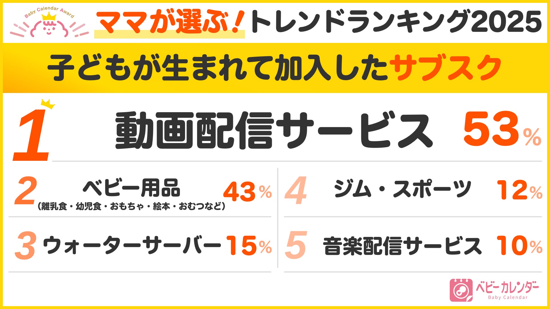 1位の動画配信サービスは「子どもにディズニーアニメを見せたかったから」「子育て中、家にいる時間が増えたので」といったコメントが多数。2位のベビー用品については、「おむつの買い忘れを防げる」「おもちゃや絵本は自分で選びきれないので、オススメしてくれるとうれしい」など、手軽で便利なサービスに魅力を感じ、利用しているママ・パパが多いようです。