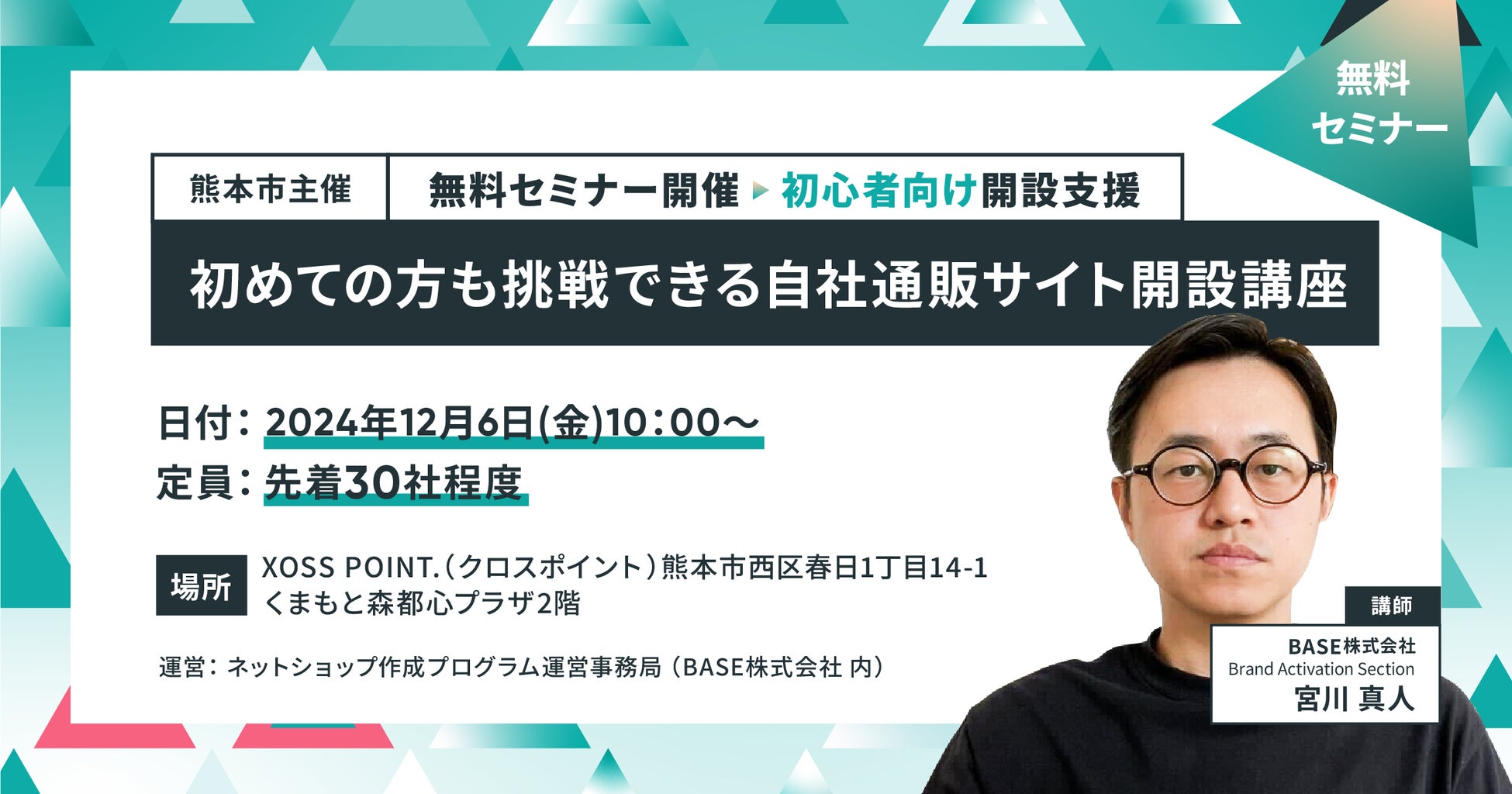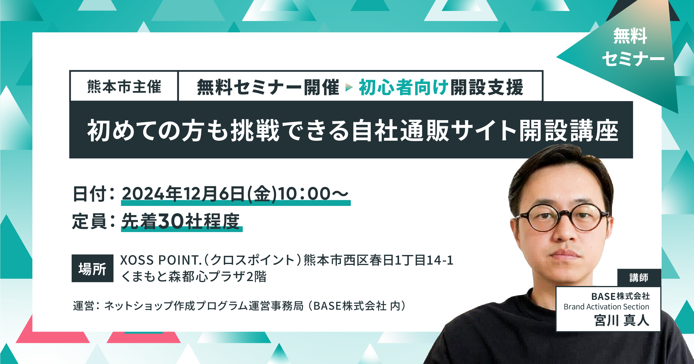 - 熊本市内の中小事業者を対象にBASEが講師を務めるセミナーの参加募集を開始 -