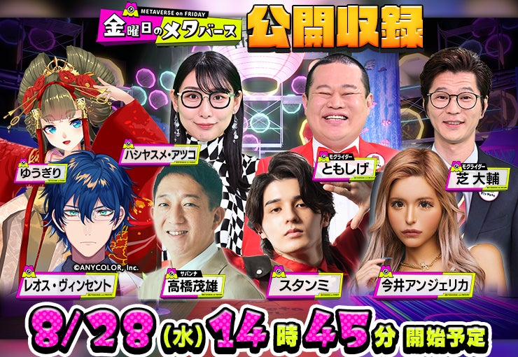 8月28日(水)14時45分からメタバース空間で公開収録が開催決定!ゲストのサバンナ高橋茂雄と一緒に”ドラえもん4択クイズ”に挑戦!さらにメタバース界で話題の配信者”スタンミ”が地上波初出演!