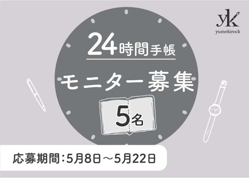 創業88年の手帳メーカー伊藤手帳株式会社(本社名古屋市:代表取締役社長 伊藤 亮仁)は、開発中の新製品 「24時間手帳(仮称)」 の開発に一緒に取り組んでくださる製品モニターの募集を、2025年5月8日10時より開始いたします。選ばれた5名のモニターによる意見は、2025年9月発売予定の実際の製品開発に反映される可能性があります!(https://www.yumekirock.com/)