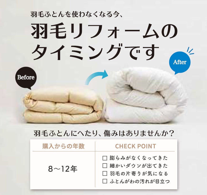 ■羽毛ふとんのリフォームサイン、見逃していませんか?