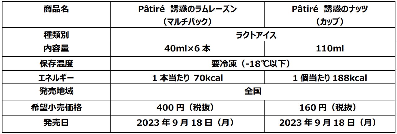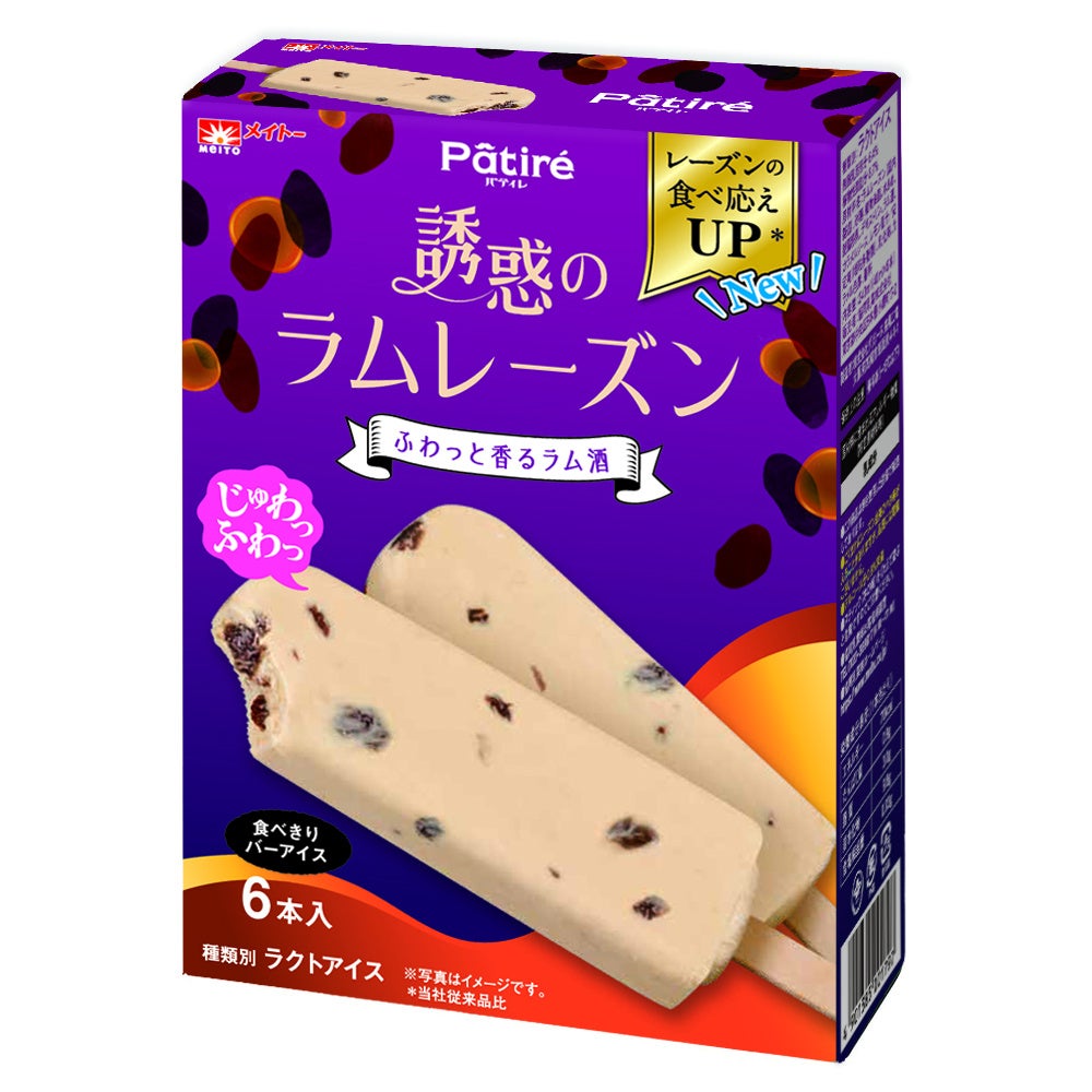 Pâtiréシリーズのこだわりである五感に訴える美味しさを生み出すため、ラムレーズンのカットサイズを1.5倍に大きくし食べ応えをアップしました。さらに、アイス部分にオールドジャマイカラム酒を配合し、洋酒の味わいがしっかりと感じられます。刻んだレーズンのじゅわっとした食感と洋酒の奥深い香りをぜひお楽しみください。