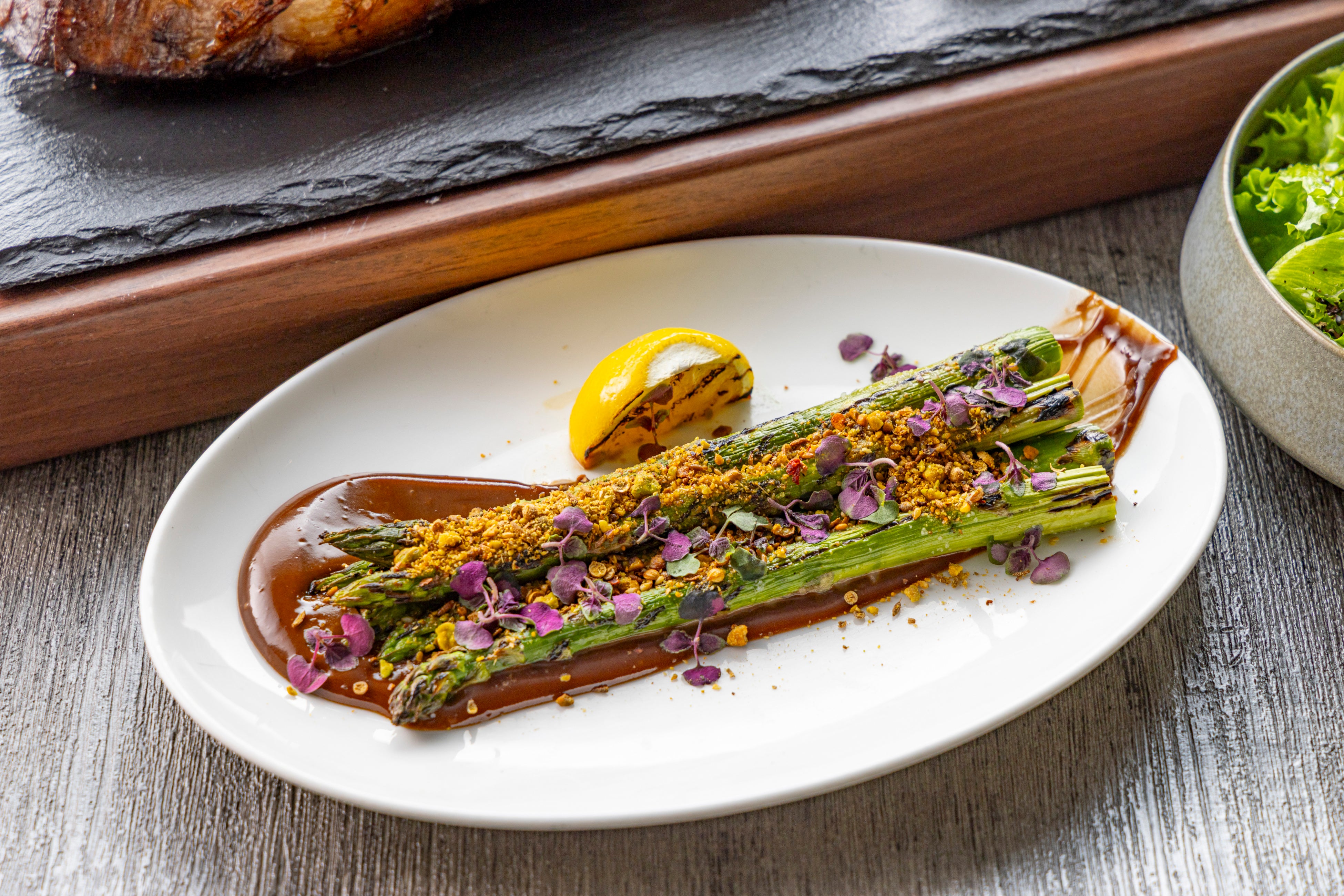 ・アスパラガスのグリル レモン、ブラックガーリックアイオリ