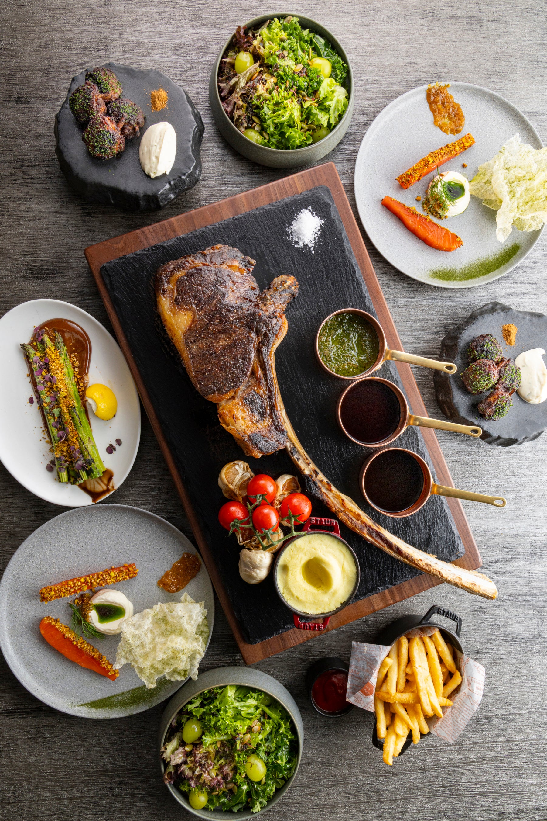 ステーキに添えられるメニューは、メトロポリタングリルのシグニチャーが多数揃います。「フジマスのシトラスマリネ」やスパイスをたっぷりまとった「ジャークチキンウィング」、「メスクランサラダ」の前菜はテーブルシェアスタイルで。ステーキに添えられるサイドディッシュはグリルカウンターでスモーキーに焼き上げる「アスパラガスのグリル レモン、ブラックガーリックアイオリ」や「ローストトマト、ローストガーリック」、濃厚な旨味とコクが特徴のボーンマローでクリーミーに仕上げる「燻製ボーンマローのポテトピューレ」や「クラシックフレンチフライ」をお楽しみいただけます。