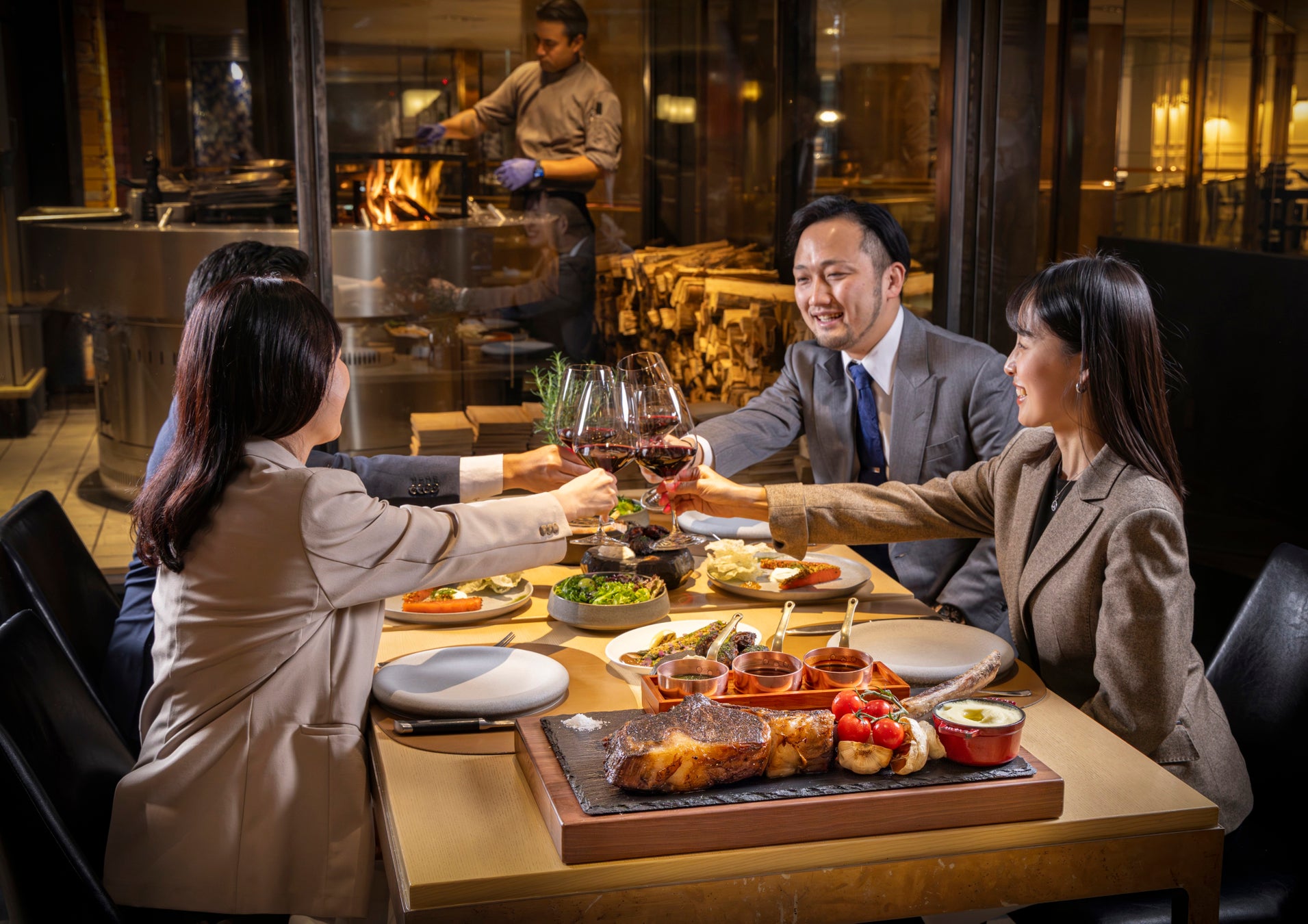 【2025年12月1日】ヒルトン東京(新宿区 総支配人フィリックス・ブッシュ)2階「メトロポリタングリル」では、2026年1月5日(月)より、大型グリルカウンター前の特等席を確約し、1日1組限定で約2kgの牛脂熟成国産トマホークステーキを中心にお楽しみいただくパーティープラン「ザ・トマホークテーブル」をお1人様 ¥15,000(ご利用は4名様~)にてご提供いたします。本プランには、前菜3品に加え、芳醇な香りが広がる「燻製ボーンマローのポテトピューレ」や、「アスパラガスのグリル レモン、ブラックガーリックアイオリ」など、グリル料理を引き立てるサイドディッシュもセットに。目の前の大型グリルカウンターで焼き上がるライブ感とともに、メトロポリタングリルならではのダイナミックな食体験をお楽しみいただけます。