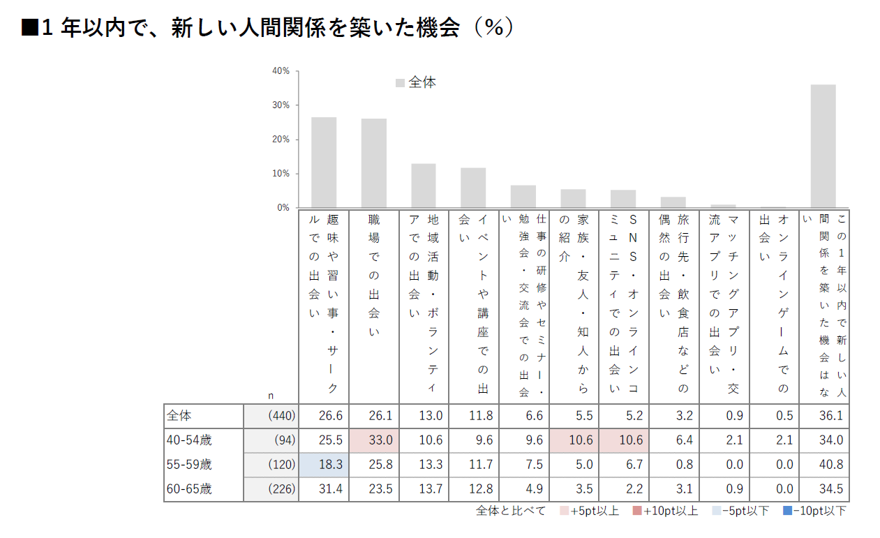 1年以内で、新しい人間関係を築いた機会(一部抜粋)