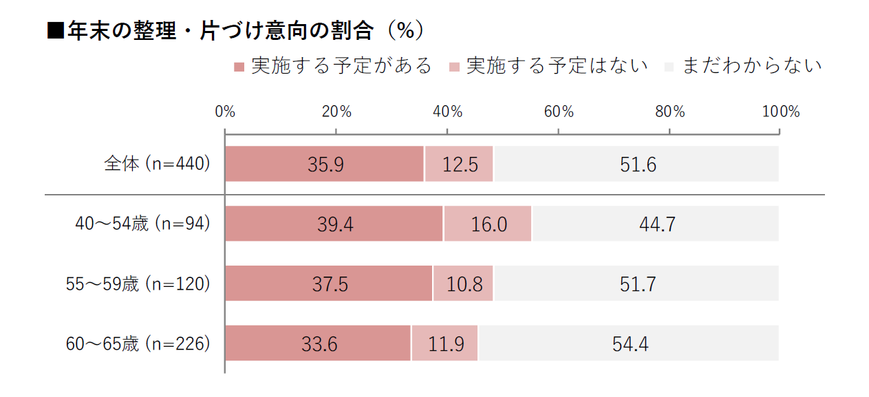 年末に整理・片づけの「実施意向あり」と答えたのは35.9%。