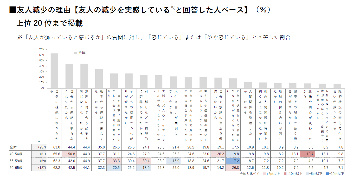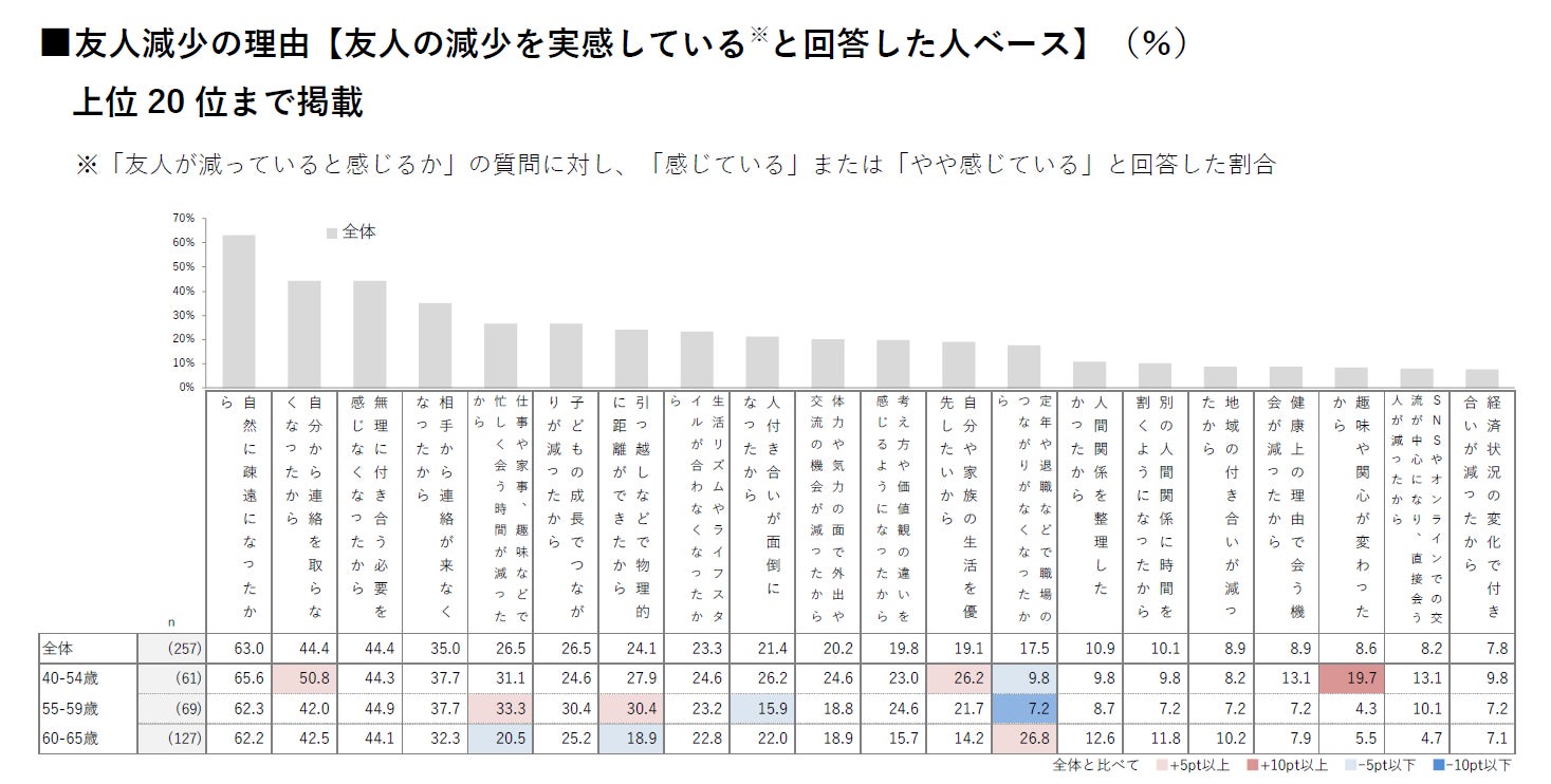 約6割が友人関係の減少を実感。過去の繋がりは自然と疎遠になる一方、