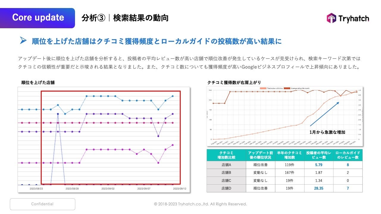 その他にも、今回のCore Updateで起きた検索画面の変化や事象と合わせて、今後行うべきMEO対策について解説したレポートとなっています。
