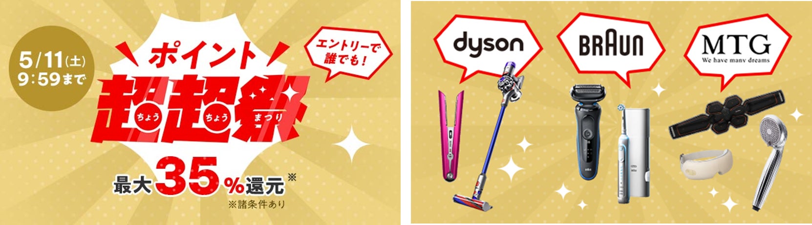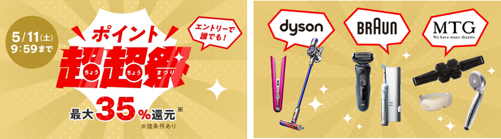 ■ポイント超超祭・ブランド家電(dyson・BRAUN・MTG)大特価SALEについて