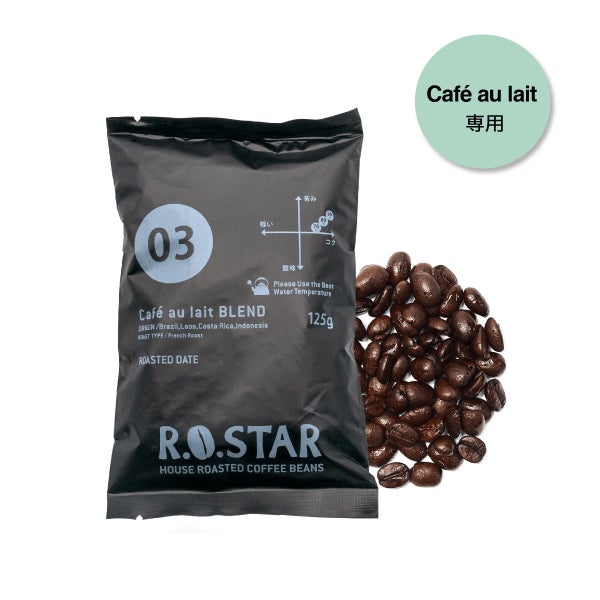 クラシックな印象の伝統的カフェオレブレンド。個性の強い豆を深煎りにし引き出したコーヒーオイルの柔らかなコクと芯のある苦みがミルクと贅沢マリアージュ。