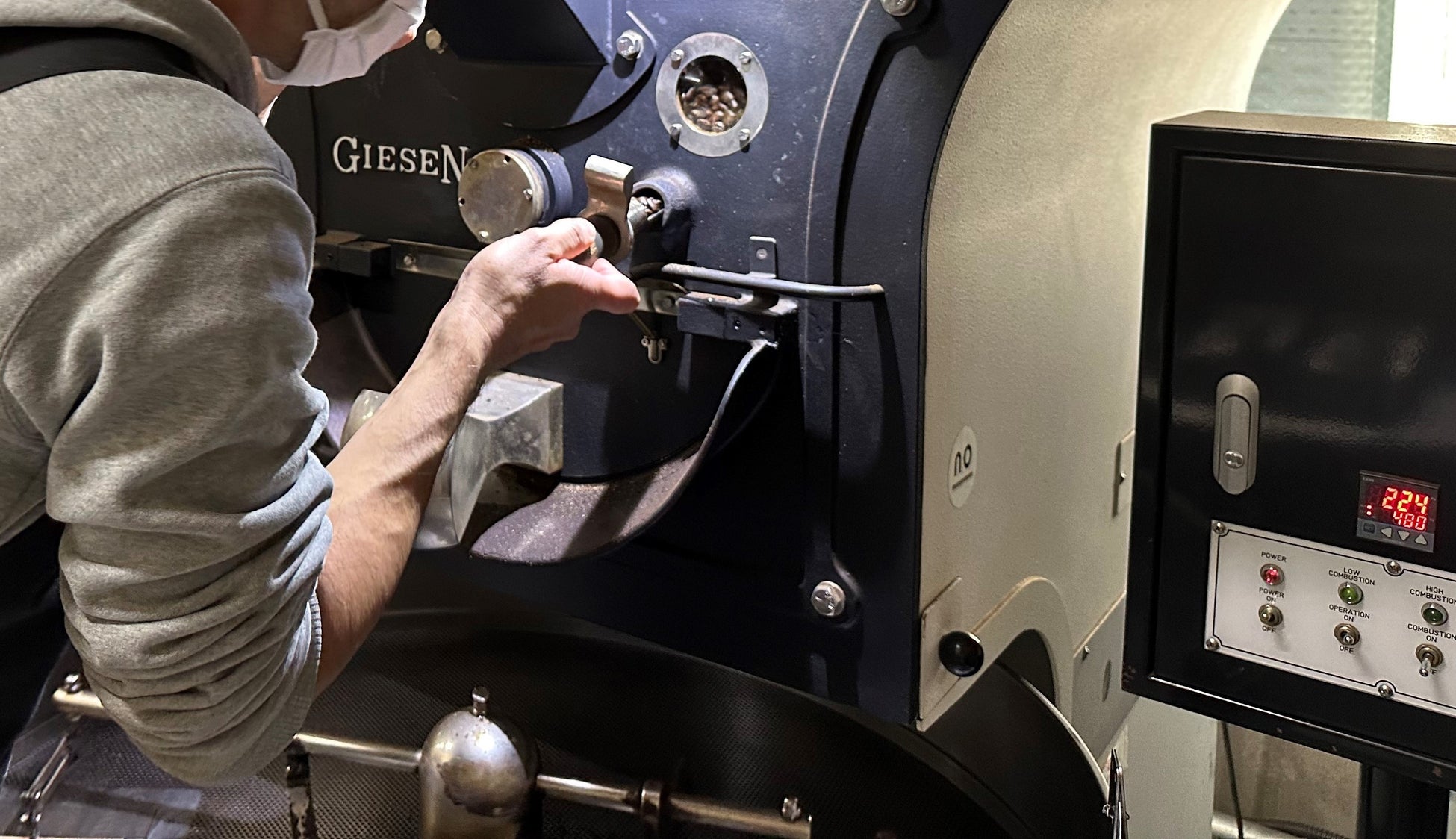焙煎マシンはコーヒー焙煎の世界大会(World Coffee Roasting Championship)の認定マシンGiesenを使用しています。一度に6kg焙煎できるタイプと15kg焙煎できるタイプを保有しており、焙煎量に合わせて使い分けています。