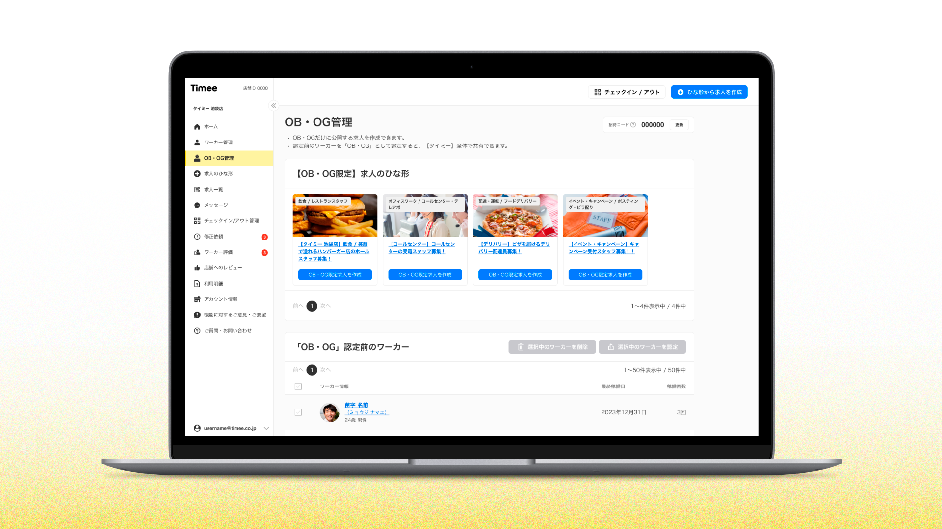 将来的には、OB・OGの待遇向上や、特定のブランドのOB・OGであることが「タイミー」アプリ上で可視化され、履歴書のように活用できることを目指しています。
