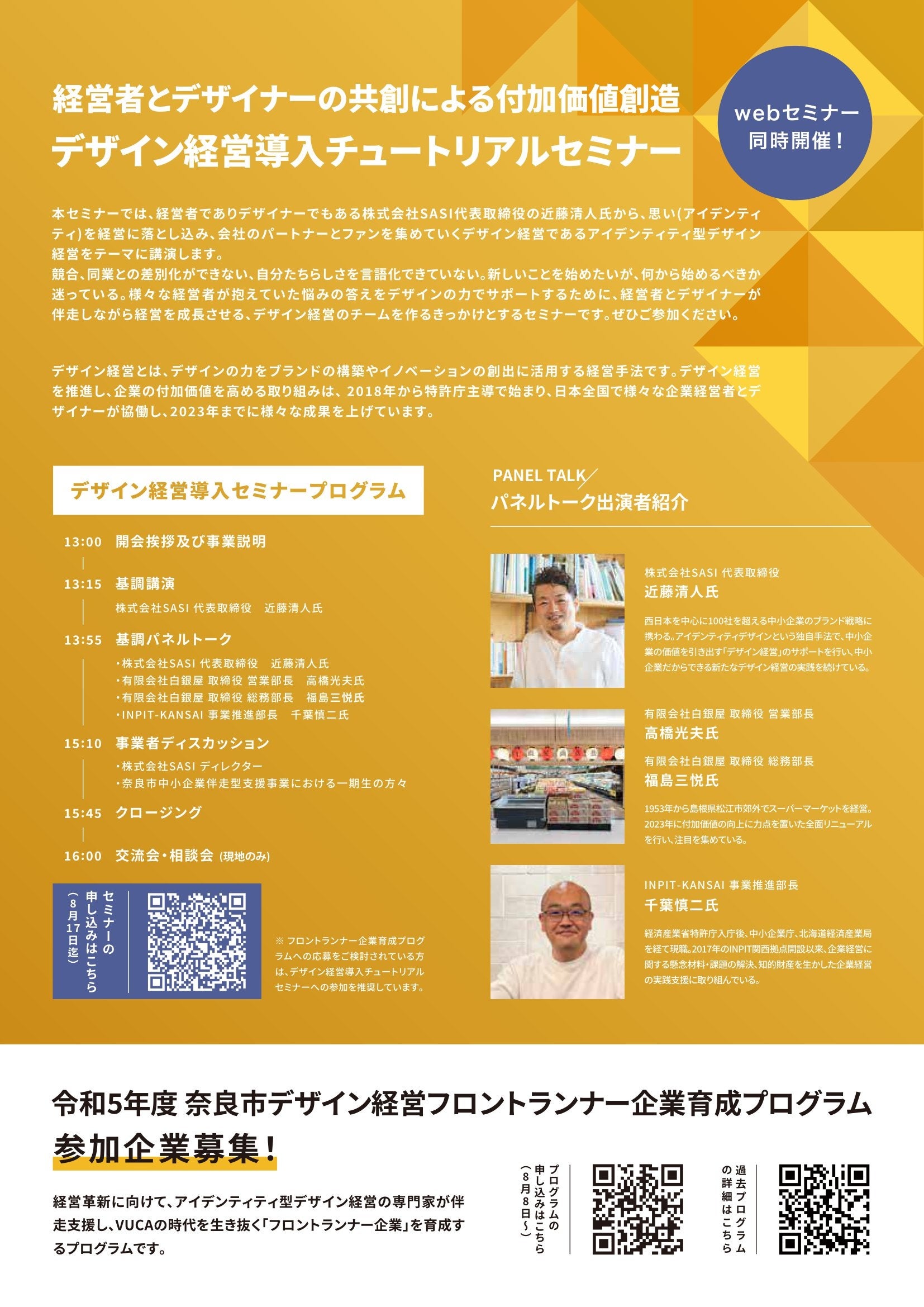 令和5年度 奈良市デザイン経営フロントランナー企業育成プログラム参加企業募集!(※8月8日~募集開始)