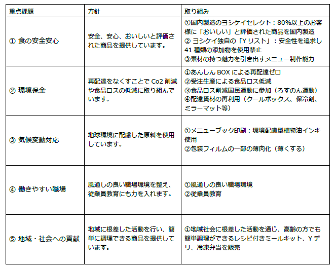 サステナビリティに関する重点課題の設定及びヨシケイグループの取り組みについて
