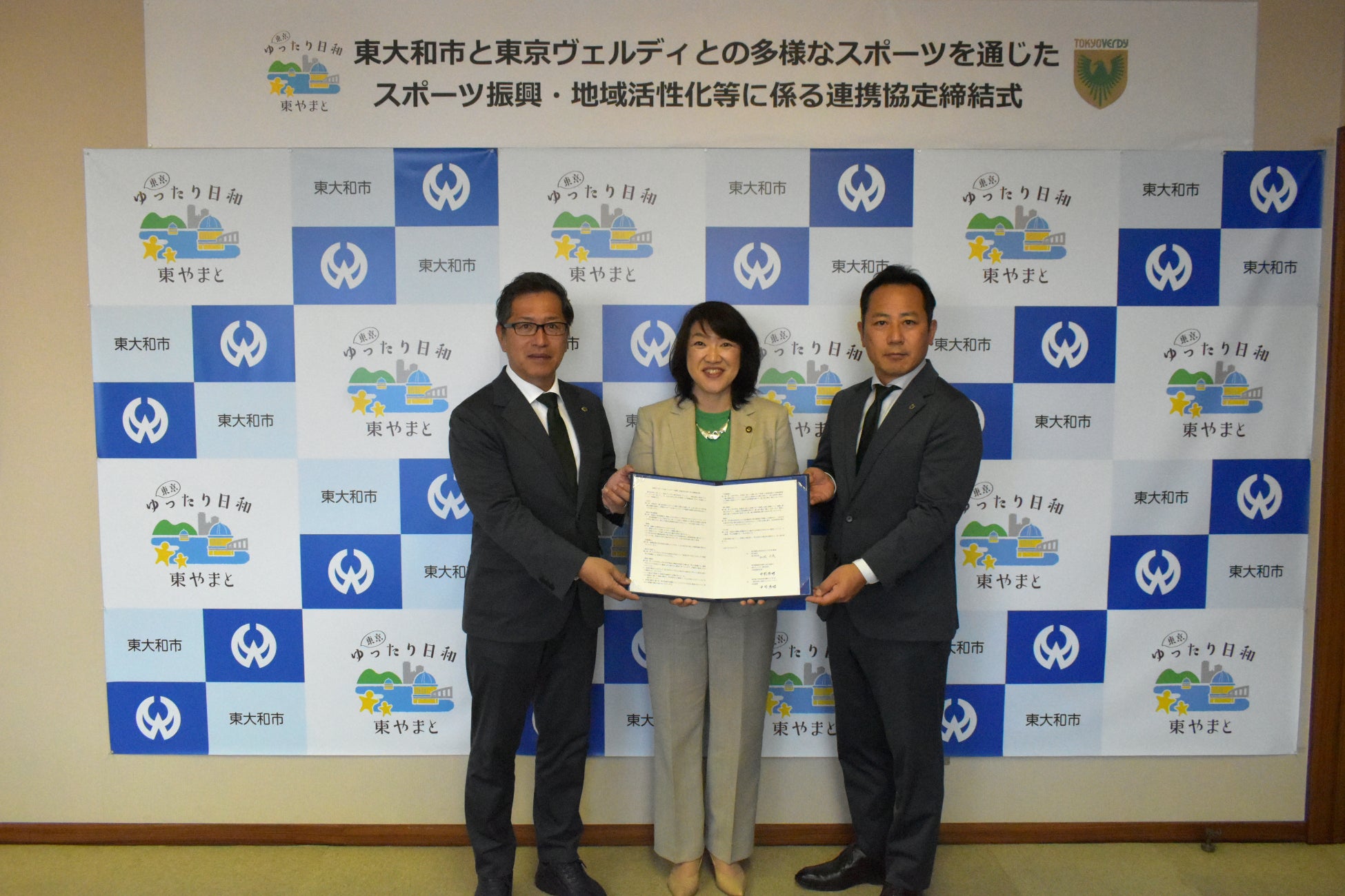 このたび、東京ヴェルディと一般社団法人東京ヴェルディクラブは、2025年5月20日に、東大和市と『多様なスポーツを通じたスポーツ振興・地域活性化等に係る連携協定』を三者で結び、同日に締結式を実施しましたのでお知らせいたします。