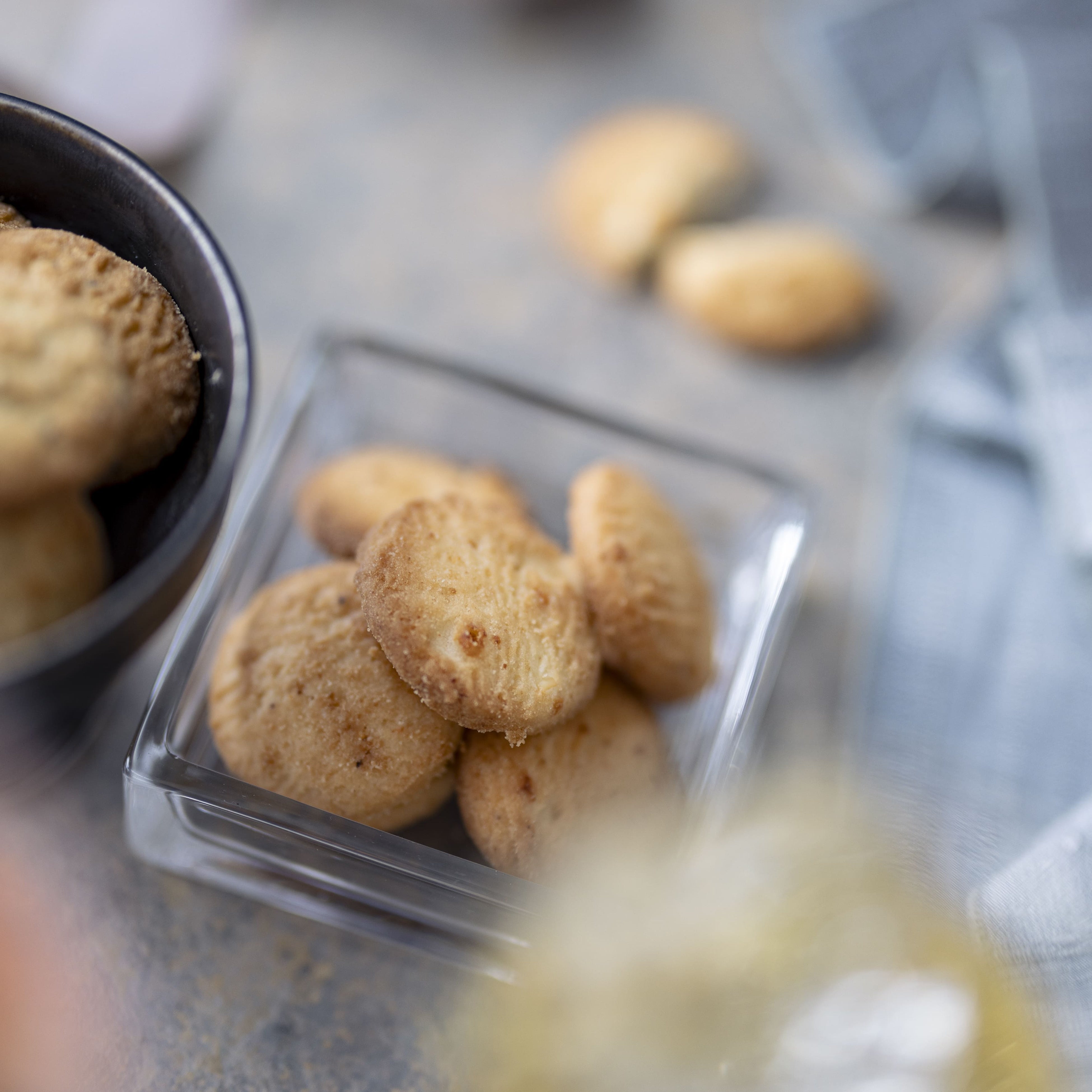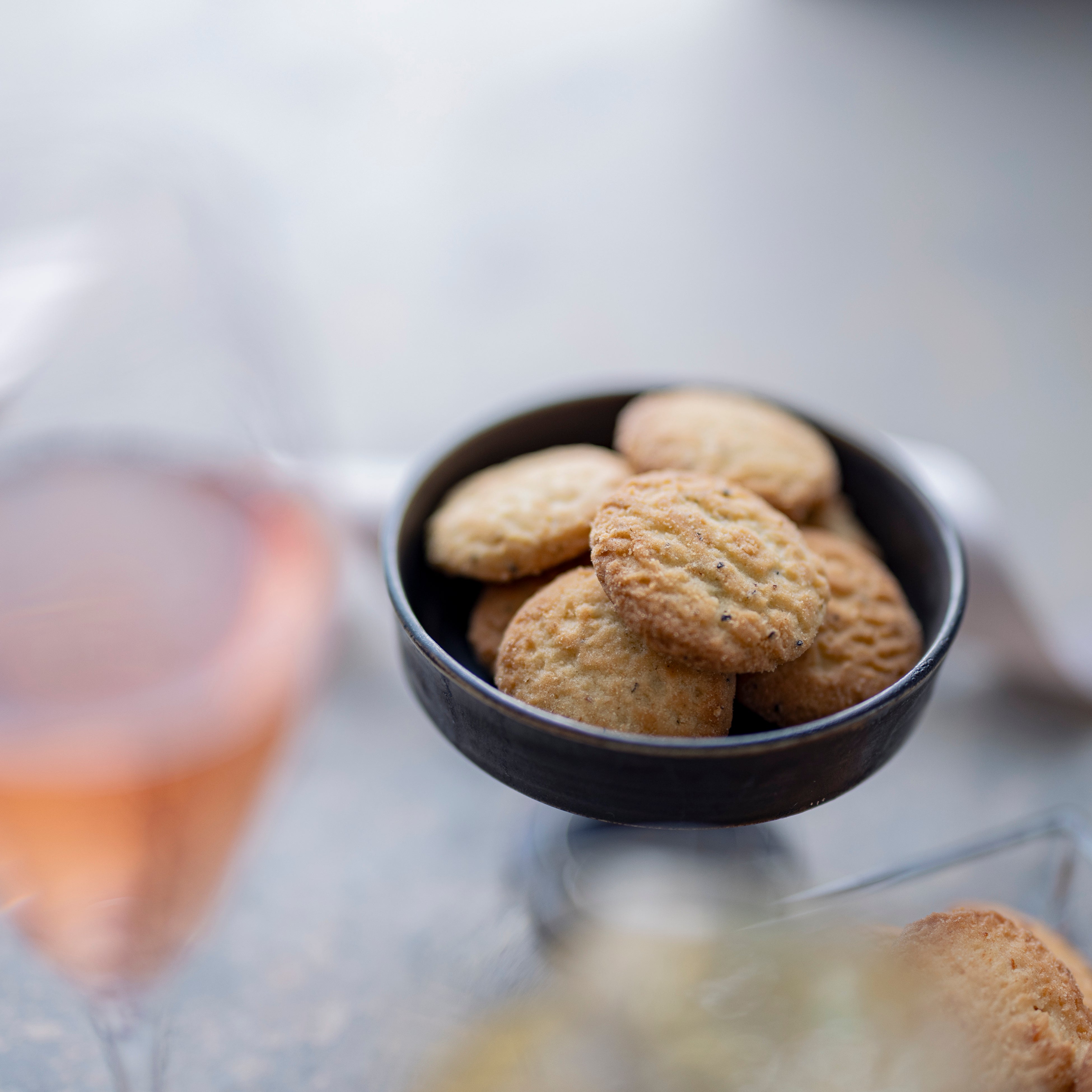 隠し味にトリュフフレーバー(香料)とブラックペッパーを加え、香り豊かでスパイシーなクッキーに仕上げました。ワインと相性◎!スパークリングワインとご一緒にお楽しみいただく組み合わせが一押しです。