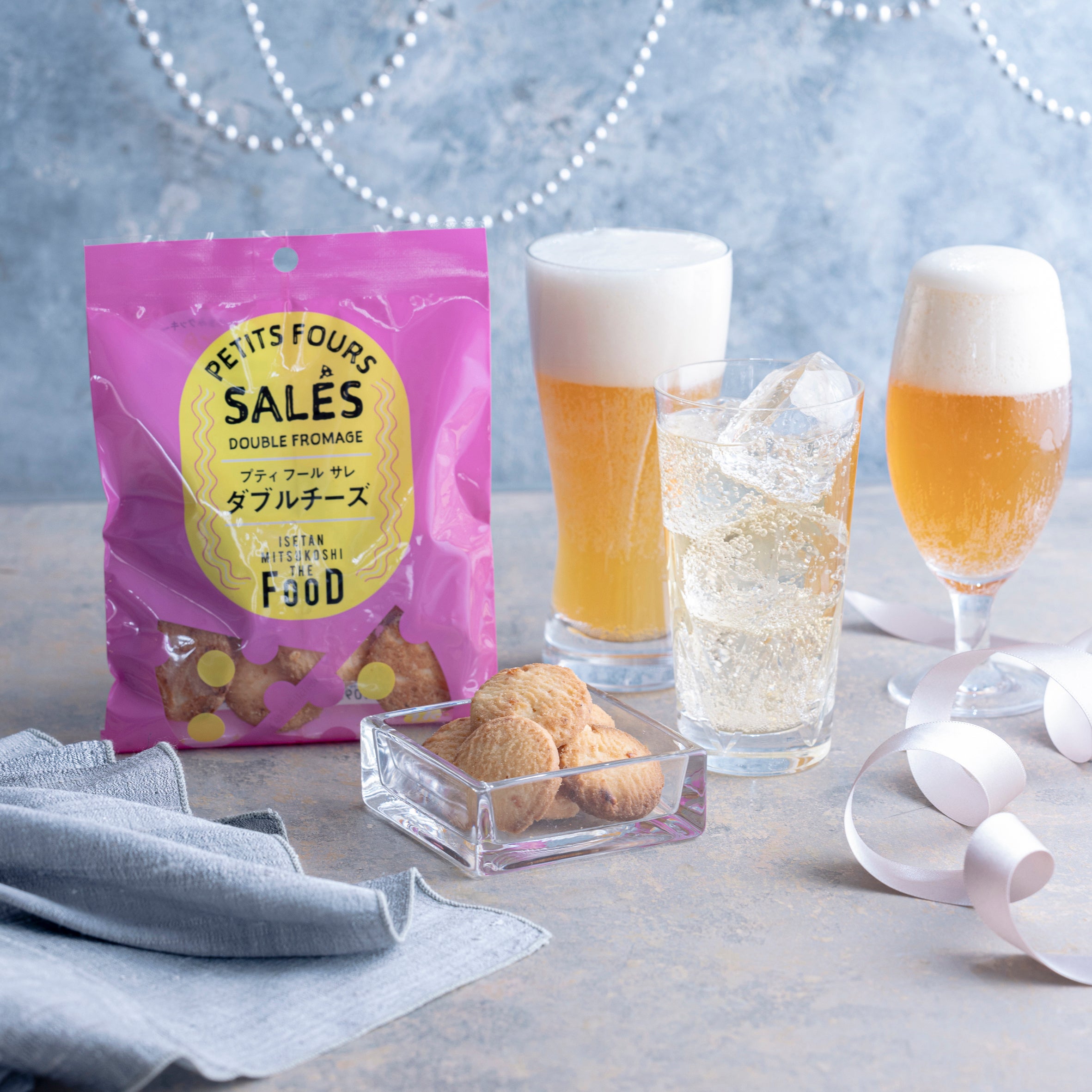 「プティフールサレ ダブルチーズ」は2種類のチーズを配合した、濃厚なチーズの風味を楽しめるクッキーです。程よい塩気はお酒との相性抜群で、特にビールやハイボールと合わせるのがおすすめ!