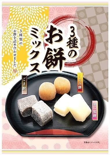 和半生ミックスシリーズに新商品が登場!くるみ餅、羽二重餅、ごま餅が一度に楽しめる「3種のお餅ミックス」を2024年9月2日(月)より発売いたします。
