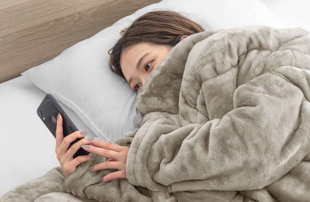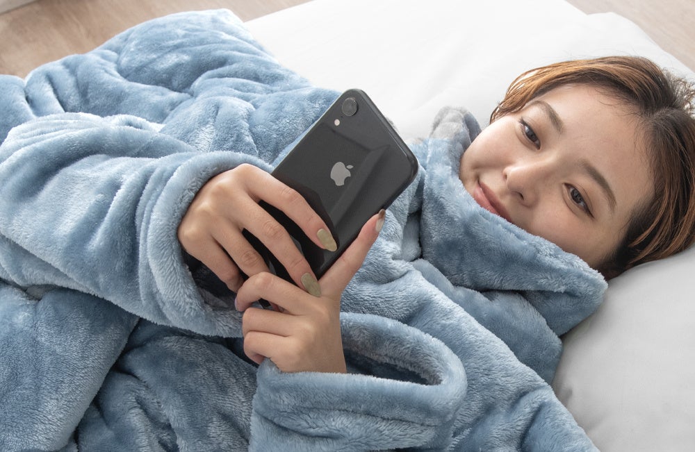 暖か快適な寝ながらスマホで冬の夜更かしをサポート!『寝ながらスマホ 袖付き掛け布団』を発売開始
