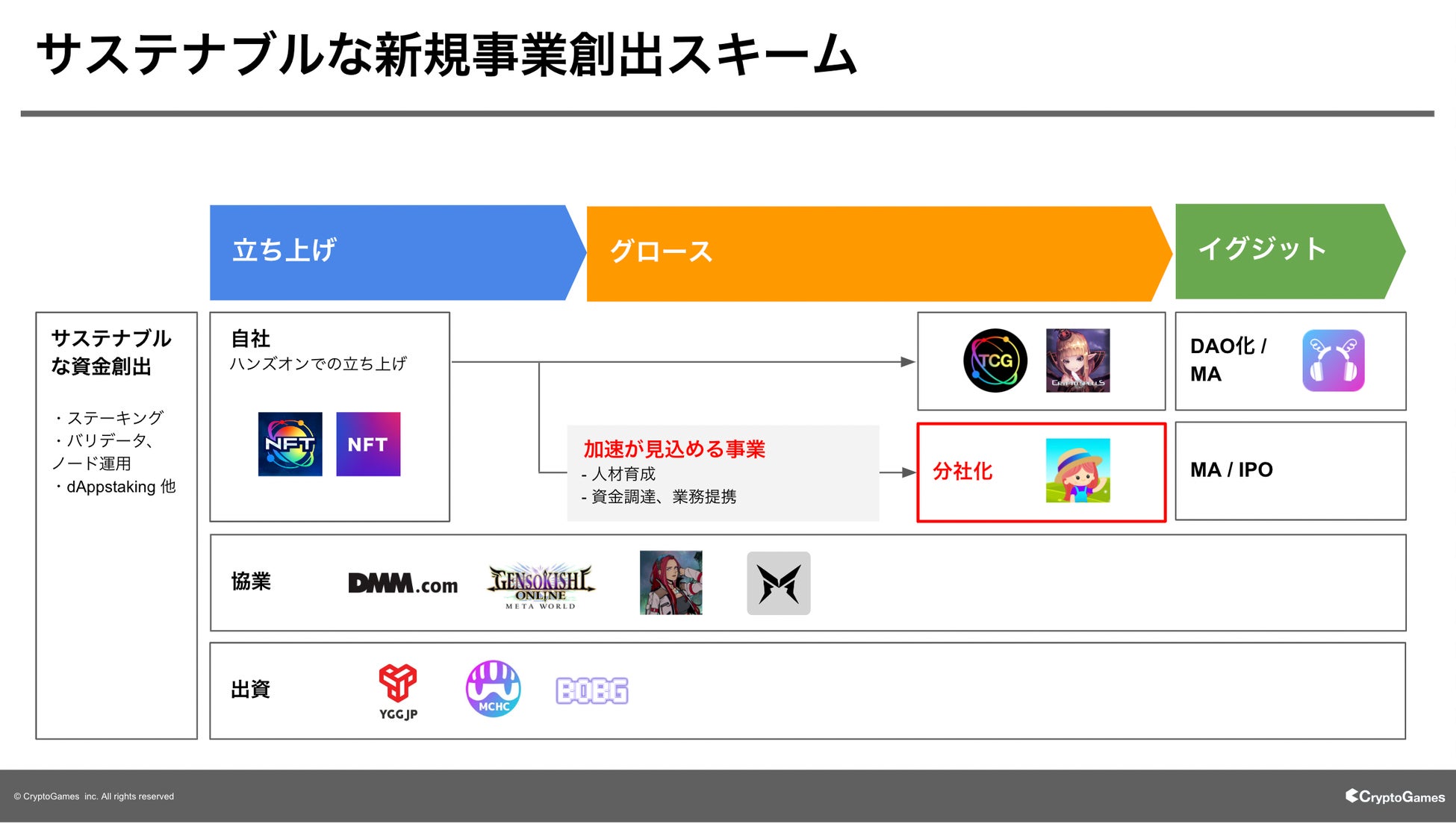 CryptoGamesでは、「ブロックチェーンでゲームをもっと⾯⽩くする」ヴィジョンの実現に向け、サステナブルにweb3新規事業を創出する組織の構築に取り組んで参ります。