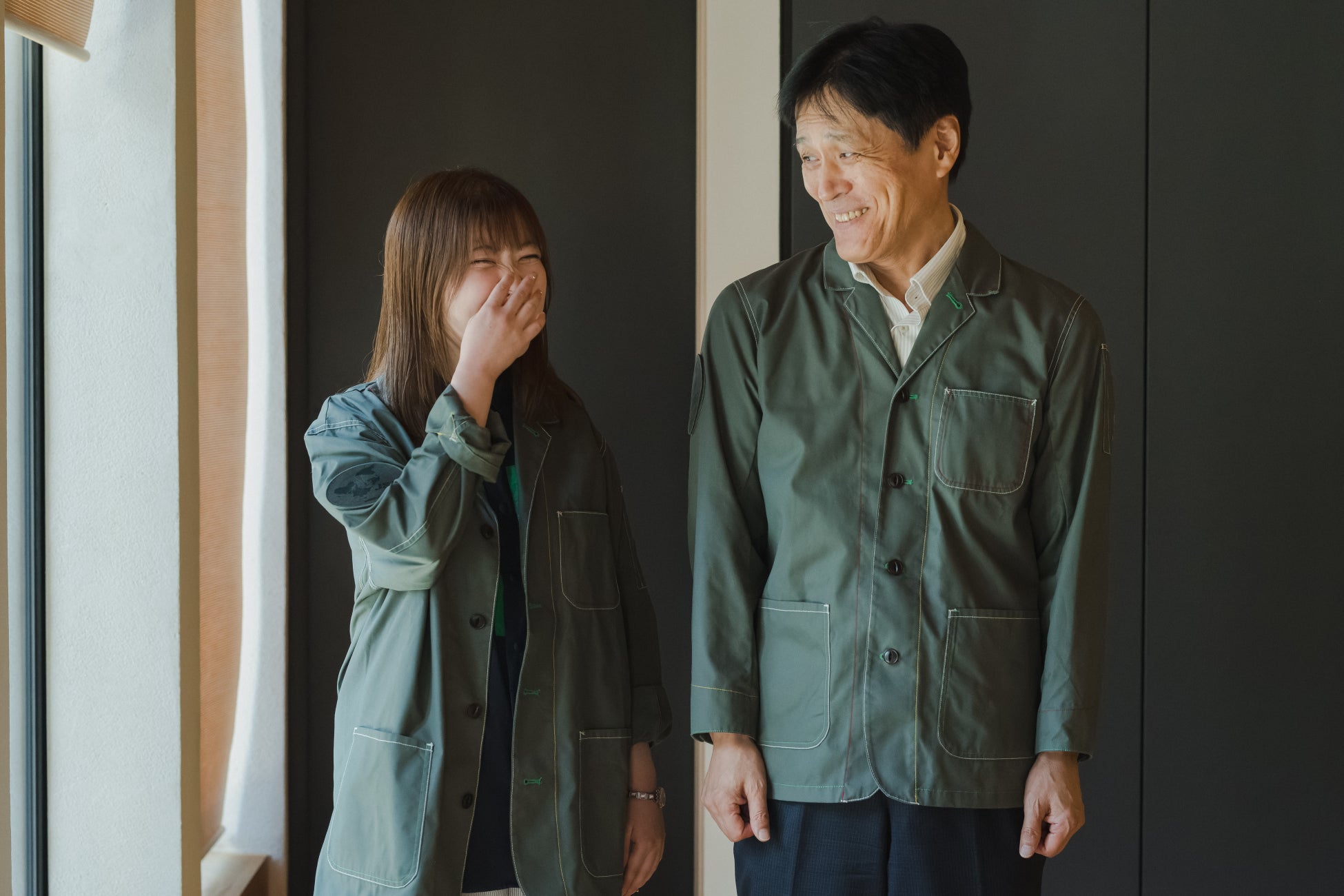 今回、半袖と長袖シャツ、ジャケットを制作しました。性別や年齢、部署など関係なく着用できるデザインにしたいという考えのもと、生地やステッチ、ボタンの素材や色合いなど細部までこだわって作られています。