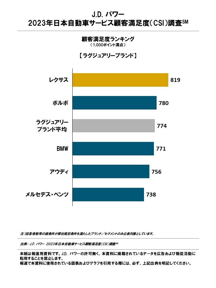 J.D. パワー 2023年 日本自動車サービス顧客満足度調査 総合満足度ランキング