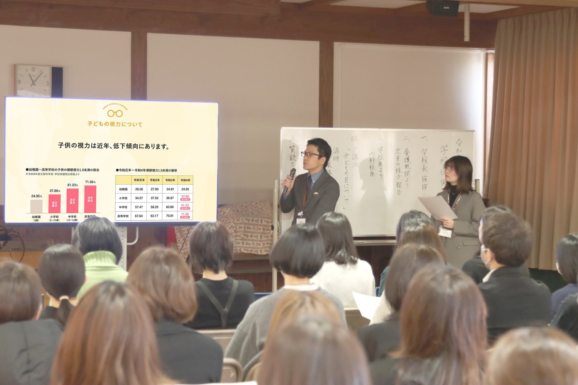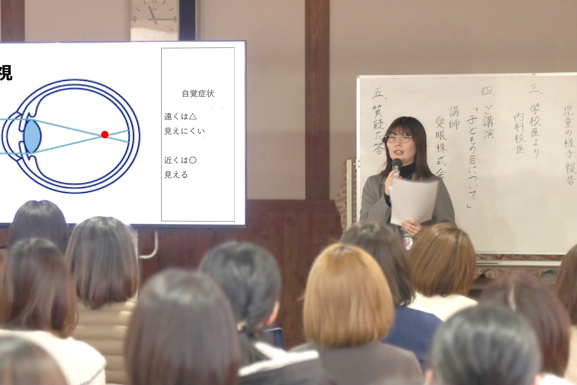 保護者向けに眼の健康を考える出張授業を開催し、眼の大切さを啓発しました。